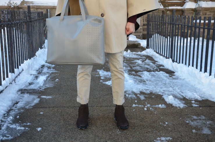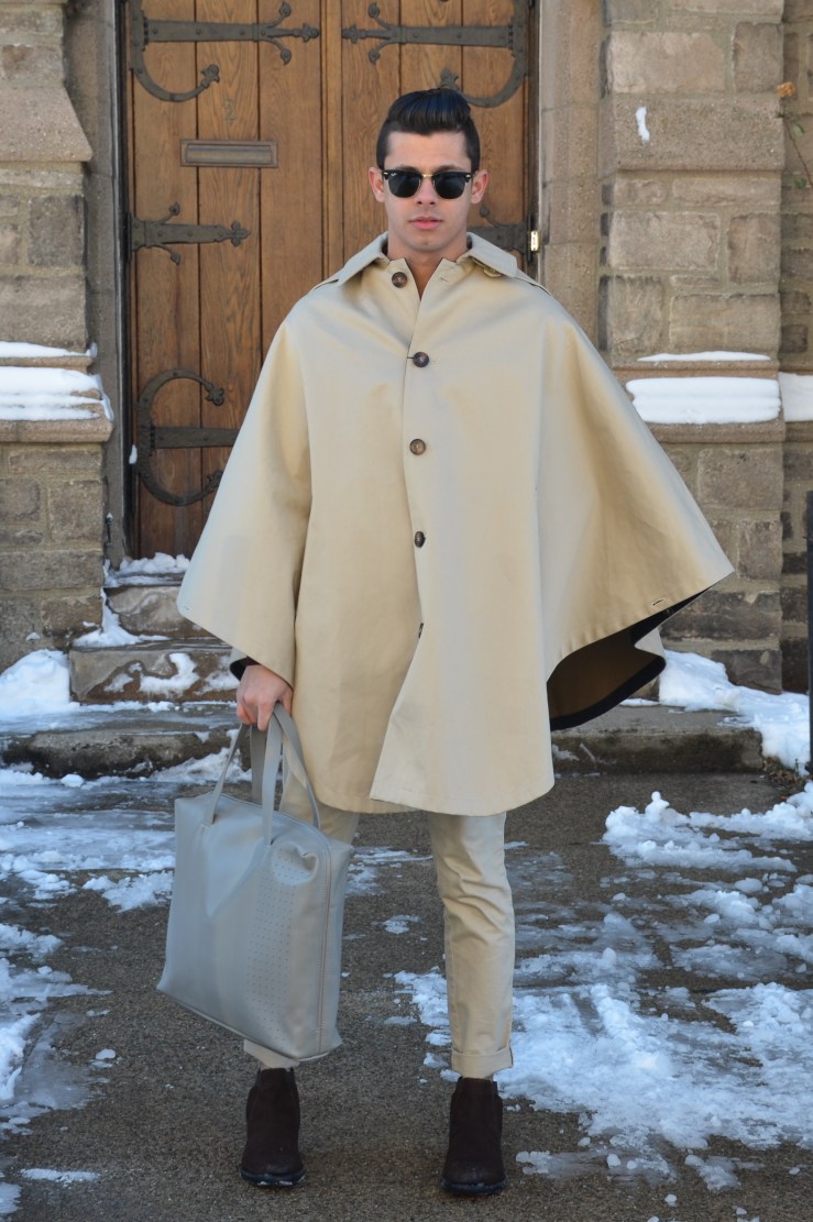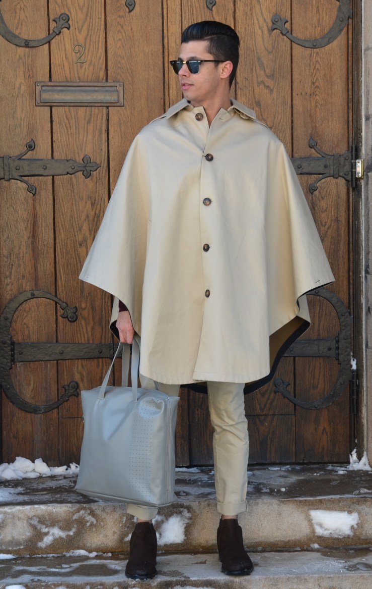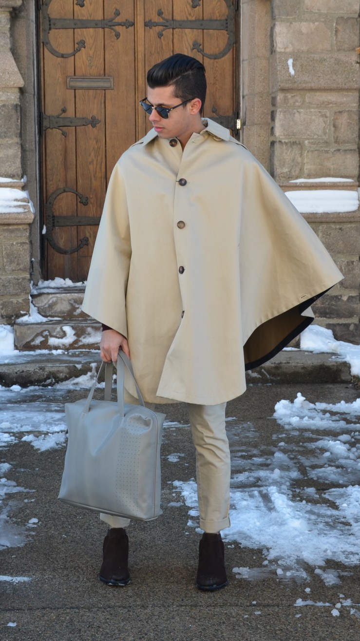 As I mentioned before, I have not had much time to do blogging and I apologize for my absence. Although the season can be uncomfortable with its temperatures, winter is great for new chic layers and looks. Winter has not been as brutal as it was last year, so we have more time to enjoy being outside and a chance to stroll through the snowy streets. This past Sunday, I opted for another tone on tone ensemble- this time it was nude. I chose skinny khakis, a dark purple cashmere sweater, and a beige cape from Zara. Without this cape, this look would be rather plain. This cape changes the entire look. It is definitely not something to wear on the streets if you are trying to hide from an ex or someone! I could tell the cape was catching many people’s eyes as I walked down the street. No matter what, it is great if your outfit is drawing attention. I truly love this cape because it has a unique cut that is unlike the coats you normally see everyday. It can keep you warm, but also unique from everyone else on the street. With a warm sweater like the purple cashmere one I wore underneath, you will have a great winter layering. I found the khakis at Forever 21Men, which is a great place to get all of your basic essentials at a great price. The boots are also from Zara and are made from pig leather. Two colors are available: both black and brown. This classic style of boots is not only very comfortable, but also super durable. They will last many walks throughout the city. The bag also comes from Zara. I have been looking for a bag that can fit also my stuff, but also look fashionable for everyday use. Because of its grey color, this bag can go with virtually any ensemble. It can be taken to work, school, or around the city on a random day.