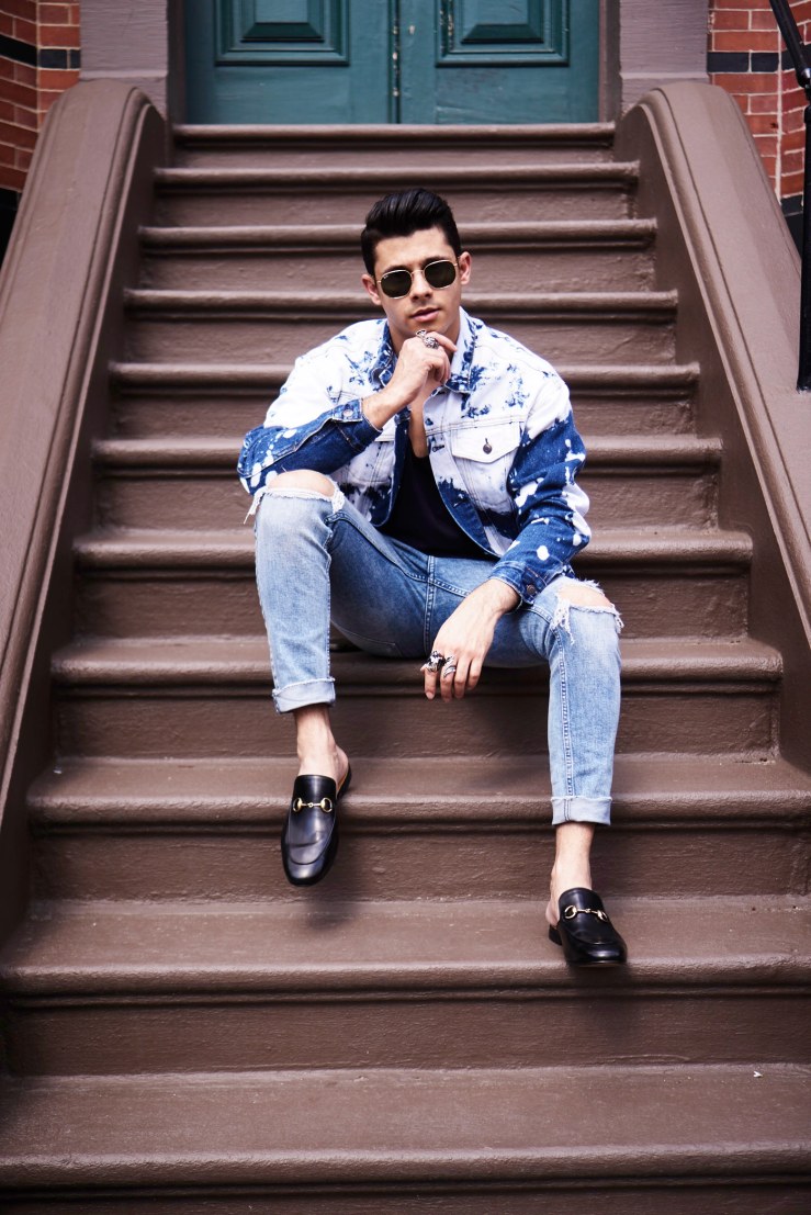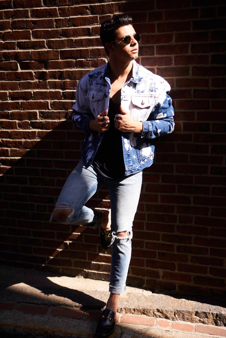 Denim is one of my favorites looks of all time. I chose this almost 100% denim look to walk around Boston and meet up with friends for dinner afterwards. As we all know, denim is super comfortable and never goes out of style. I chose this fun jacket from Forever21Men and the ripped jeans from H&M. To add an upscale and sophisticated touch to this outfit, I wanted to wear nice shoes with it so I chose these Gucci shoes that have been flying of the shelves recently. Since the jacket is a little busy I chose a simple top to go with it. If you have one really unique piece in your outfit that you want people to notice, then choose simplicity and solid colors throughout the rest of it, like I did here. If you look around, you can find a variety of denim that is not just plain and blue, as many people might think. Shutout to Dan (@danbullman) for the amazing pictures!
