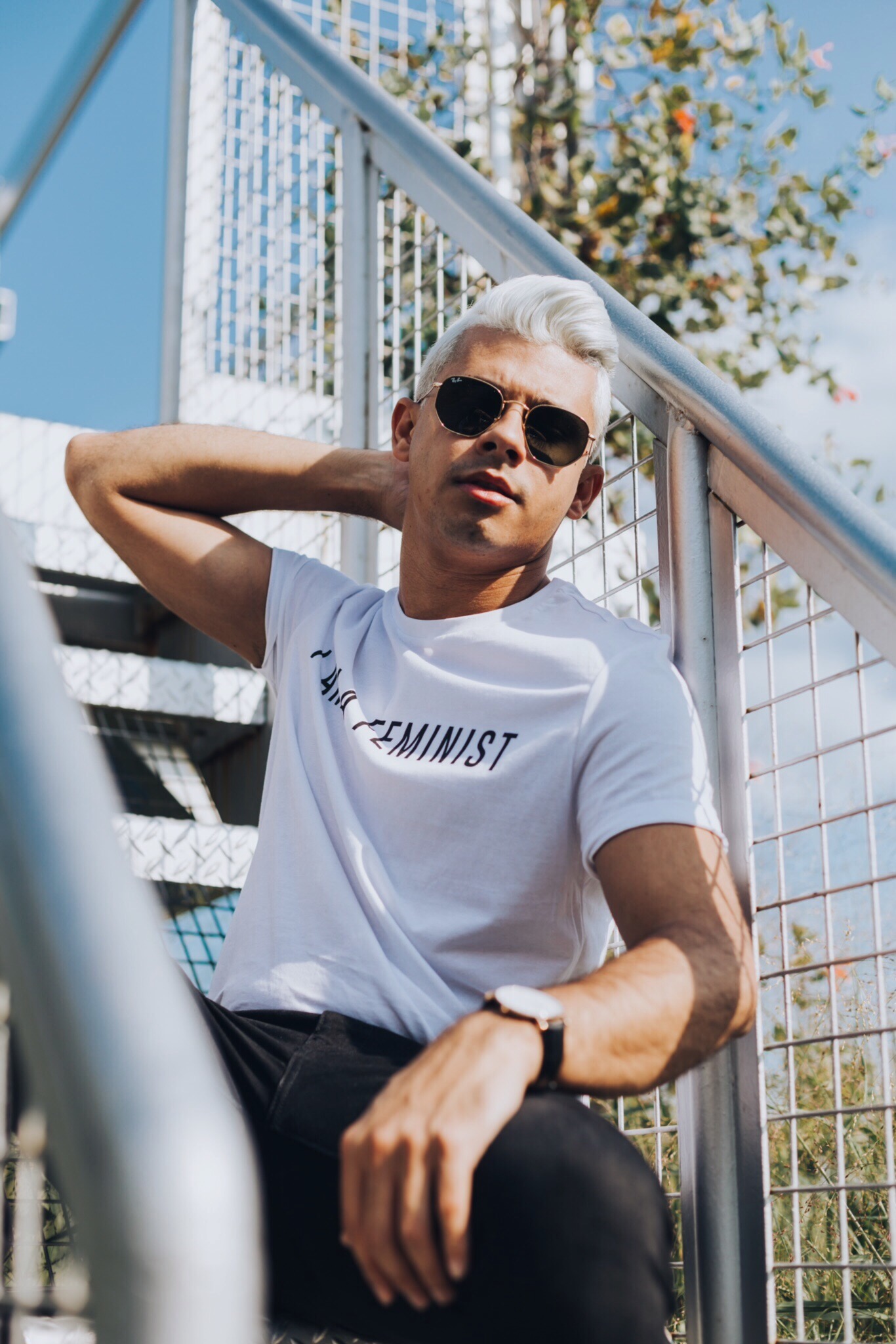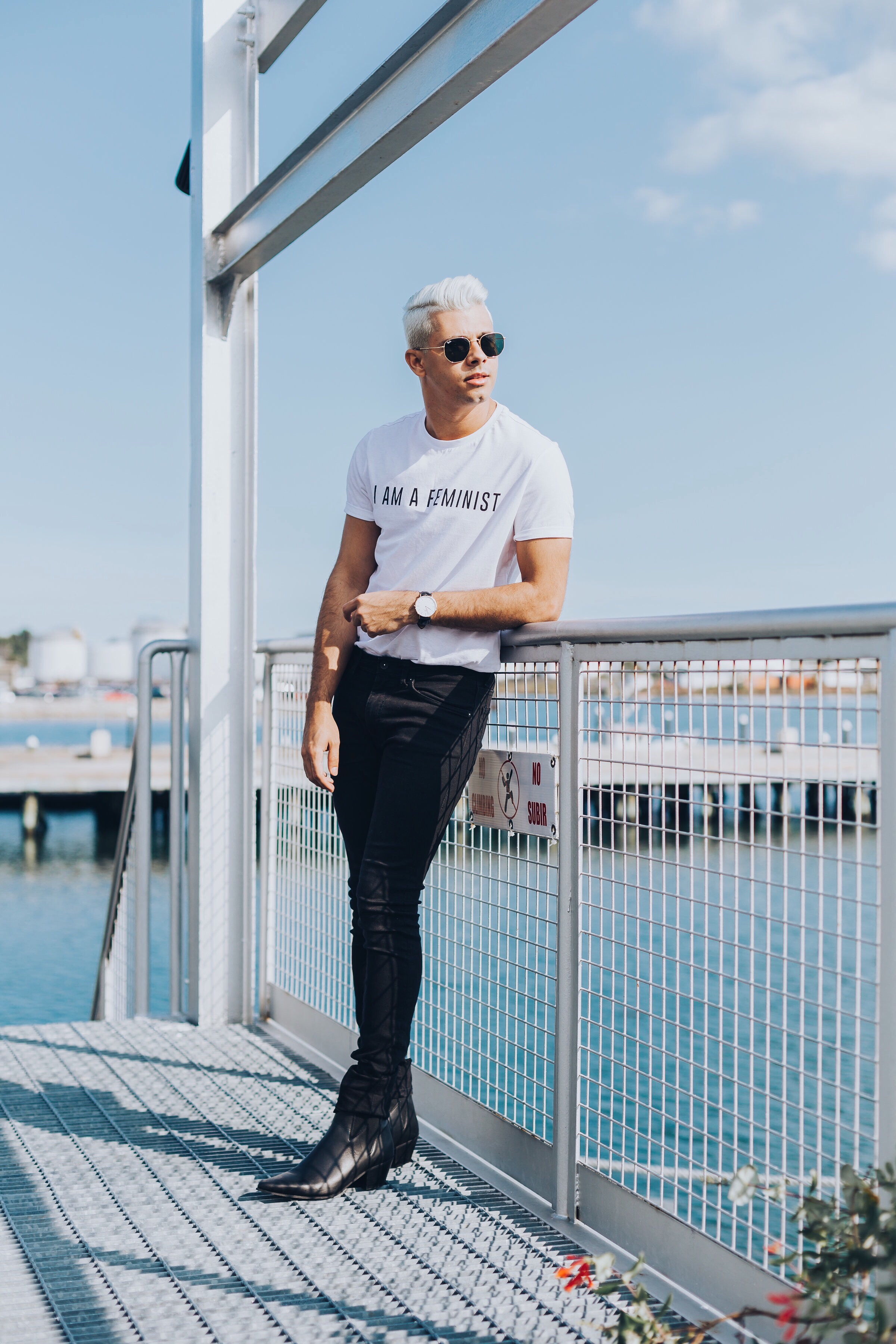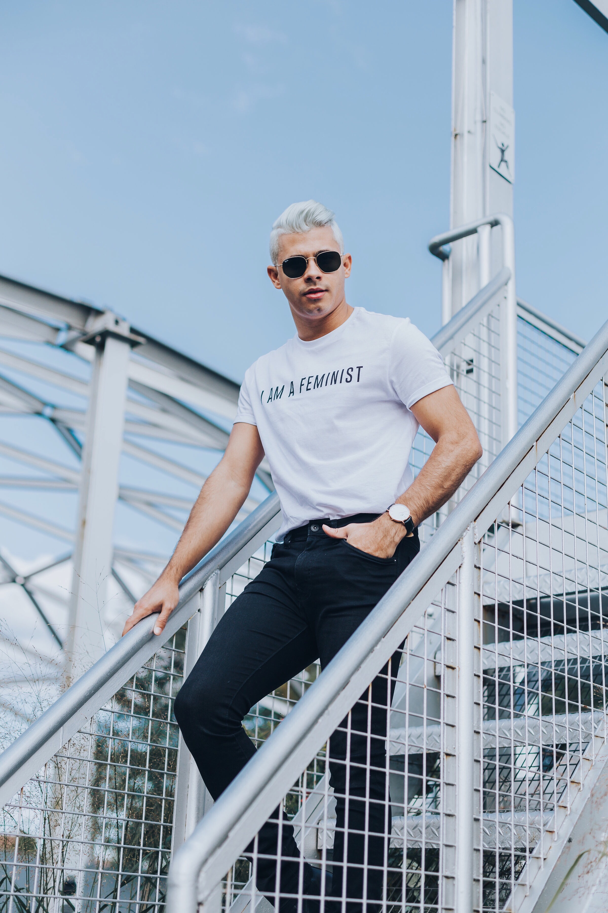 This post is mostly not about fashion, but how important women’s rights (human rights!!) have to be respected. It’s a shame that in the twenty-first century, women still have to face discrimination and obstacles across the world. Whether this comes in the form of lack of access to education, being paid less for equal work, or being victims of sexual assault, sexism cannot be tomates. I am proud to be a feminist and stand with all the women out there! We have to have the same rights no matter what. There is no such a thing as men being stronger than women. We are all human beings and we should treat each other like that. Thankfully, I have found an ensemble that proudly displays a feminist message. This amazing “I am a feminist” T-Shirt is from Asos, and my pants are from H&M. My boots are also from Asos (I’m obsessed with them, by the way).To make the whole look click together, I chose to use this classic Daniel Wellington Watch, which you can buy and get 15% OFF with my promo code “fabiolimaw”. A big thank you to Josh (@josh_dutt) for these amazing shots! Make sure to follow him on Instagram.