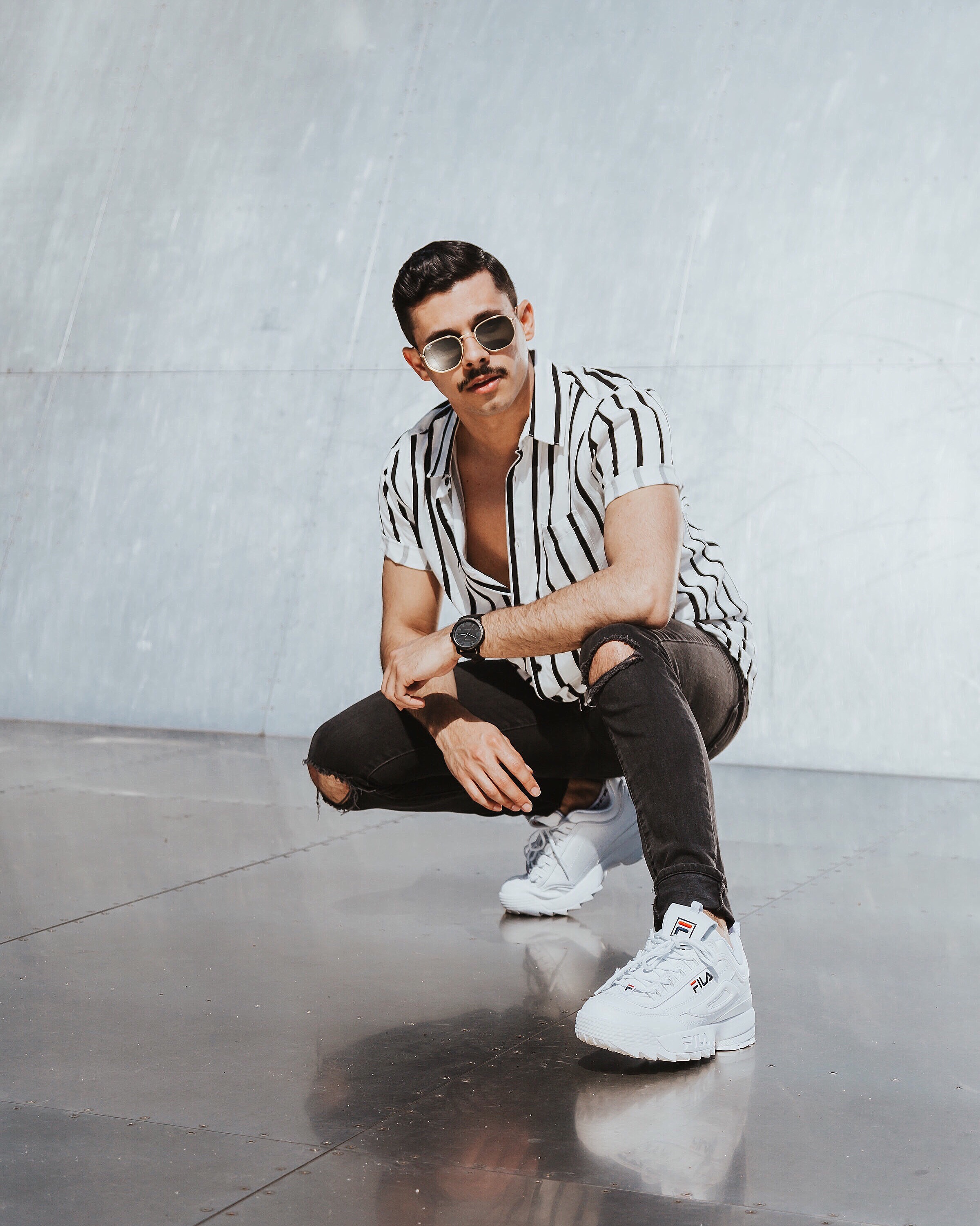 I’ve missed you guys! Stripes will be super in this fall/summer. You will see me wearing a lot of striped shirts, shorts, and even pants this season! I got this super comfortable and breathable shirt from forever21 men for under $20! That’s right! It looks like a $100 shirt though. To make the whole motif look super clean, I chose these black Paige jeans (one of my favorite jeans brands). Of course, I can’t forget to talk about the key item for this look, which would be the… Sneakers of course! As we’ve seen many bloggers and celebrities are wearing the “chunky” sneakers that are super edgy but you can turn it into a more dressy look if you wanted to. I got those FILAS for under $70! They are super comfortable and will be in for awhile. You can create any looks with it and look super fashionable. A shout out to Josh @josh_dutt for the amazing pictures! Make sure to follow him on IG!