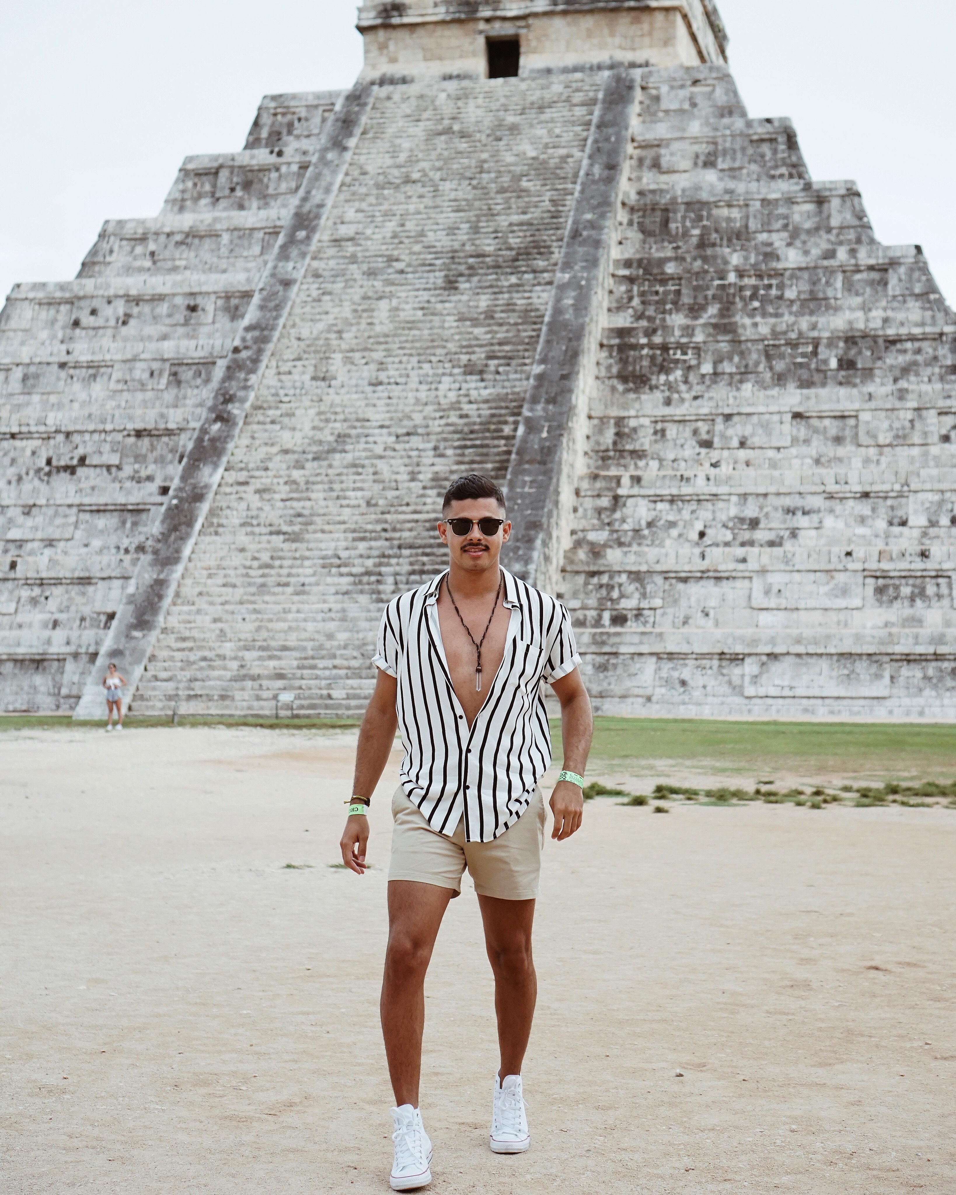 For my whole trip I chose to wear light clothes because of the heat. Most of my shirts that you see in my pictures are from Zara, (Black Silk, Stripped Navy blue,) Forever21 Men (Chichen Itza stripped shirt). And all my other stuff are vintage pieces.